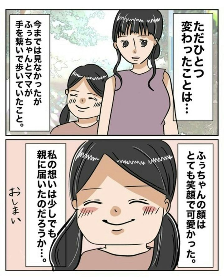 ふぅちゃんがいつも一人でいることに対し、「人の勝手ですよね」と悪びれもしない母親。フォロワーさんは「いつも一人でさみしそうです」とだけ伝えました。その後、相変わらず公園で一人で遊んでいる様子のふぅちゃん。それでも、以前とは違い、ママと一緒に歩く姿も見かけるように。ふぅちゃんのかわいい笑顔が印象的ですね。