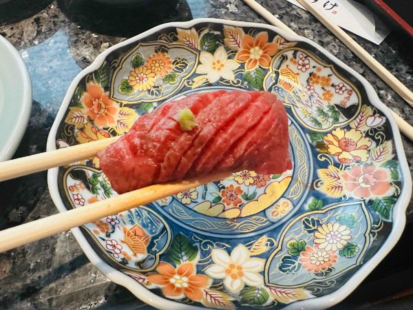 こちらは肉寿司。初めて食べましたが柔らかく肉本来の味が感じられます。