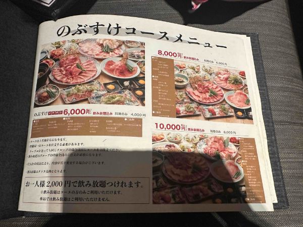 コースメニューは3種類ほどありました。飲み放題も付けれるので、忘年会にもおすすめですね!