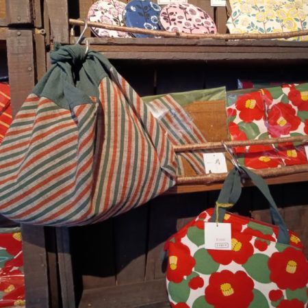鮮やかな椿柄のバッグが目につきました。カフェオリジナルの椿柄だそうです。