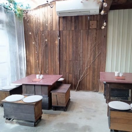 以前は電気も水道もなかった納屋が、リノベーションで素敵なカフェに生まれ変わったそう…納屋の雰囲気が残る落ち着いた空間です。