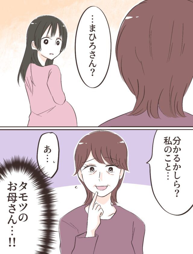 タモツさんのお母さんは、まひろさんの大きくなったお腹を見た後で、「・・ご結婚されたのね」と言い、「あ・・はい・・」まひろさんは静かに返事をしました。