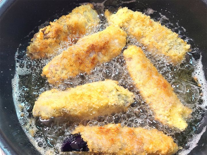 5. フライパンに揚げ油(分量外)を入れ175℃~180℃に温め、4を揚げます。