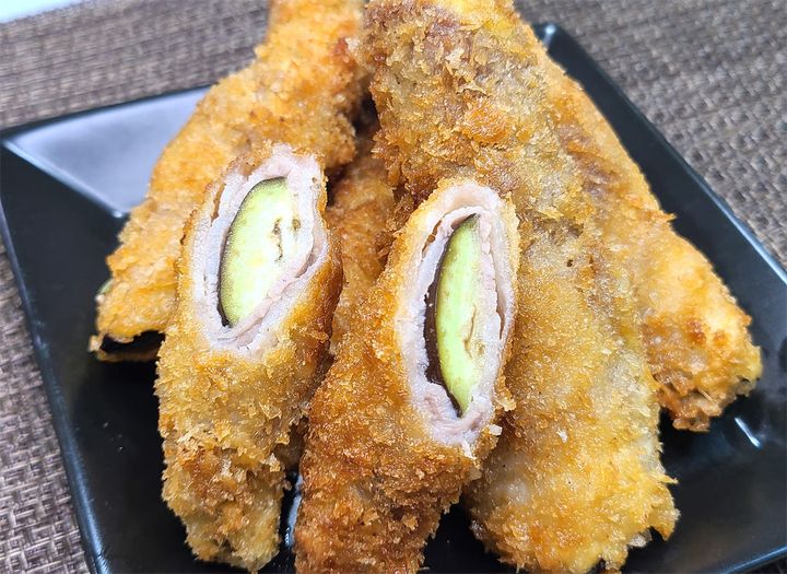 【最強なす】茄子3本で細長いの12本作れた!「豚なす巻きカツレツ」は果肉に油吸わせないから軽いの♡