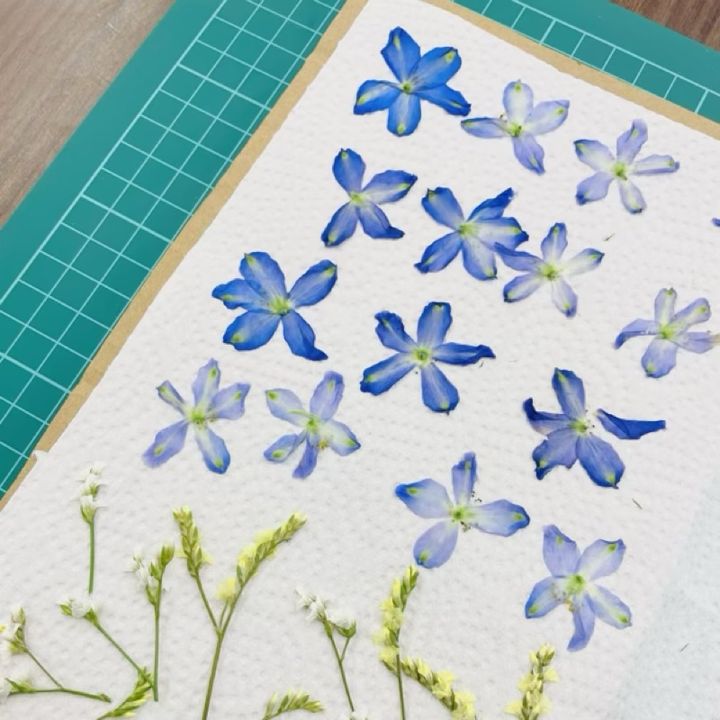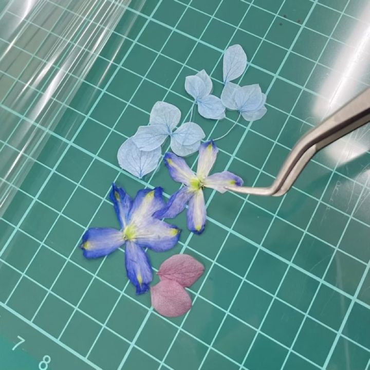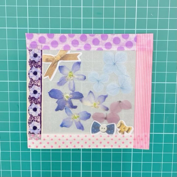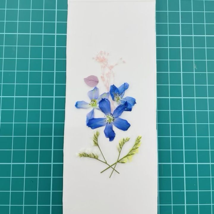 後で周りをカットするため、押し花は余裕を持って配置しましょう。