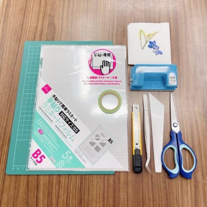ラミネーターの機械なしでも、ラミネートフィルムのみを使って、透明な押し花しおりを作ることができます。