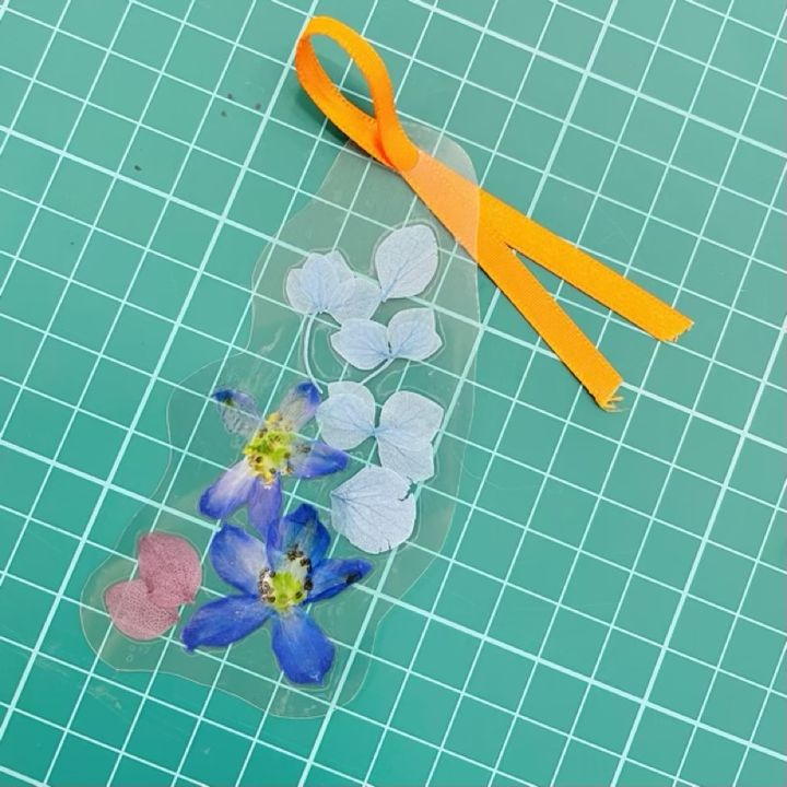 また、台紙を使わず、クリアファイルに押し花を固定すれば、透明なしおりにすることも可能です。