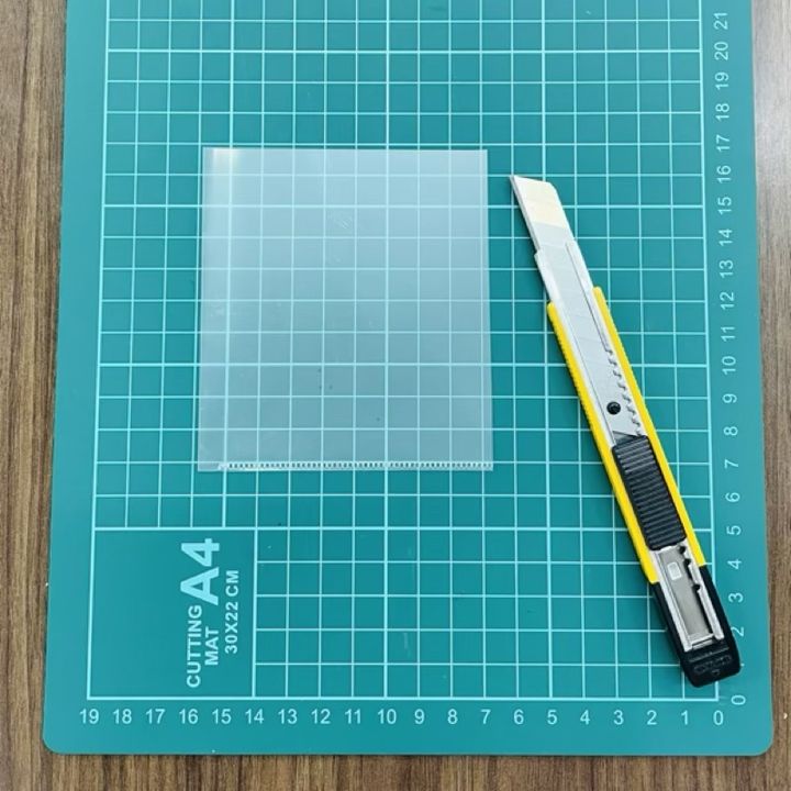 カッターマットの上で作業をすると、方眼が配置の目安になります。