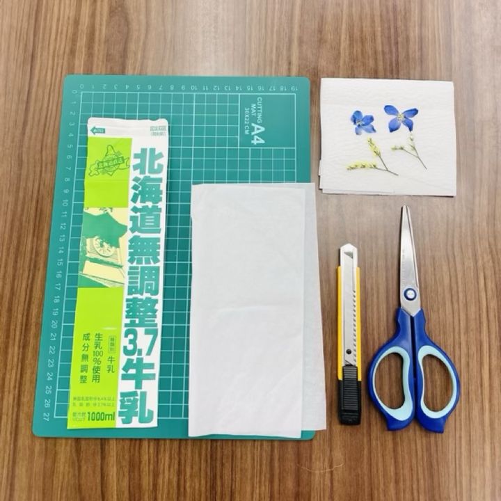 続いて紹介するのは、牛乳パックを使ったシンプルな押し花しおりの作り方です。