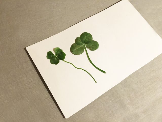 好みの紙をクリアファイルに収まる大きさにカットし、押し花を配置しましょう。