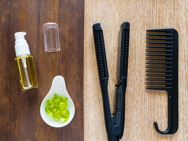 準備するものは、ヘアオイル、ストロー、ヘアアイロン、キッチンペーパー。