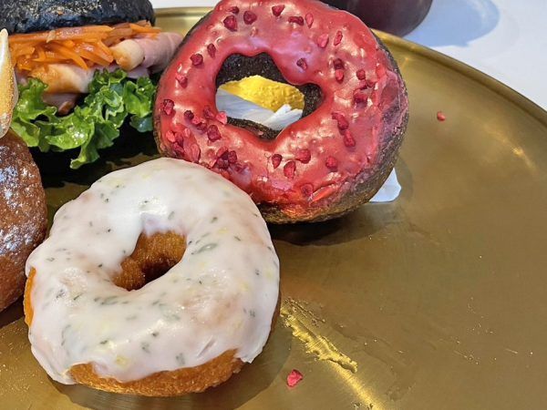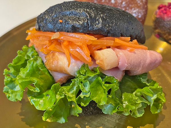 惣菜系はどんなもんかと思ってチョイス。これがまたはちゃめちゃに美味しかったんです(私的ナンバーワン)。 まず紅茶鴨のロースト、これのみで売ってほしいくらい美味しい。そしてこの濃い味をくどくさせないのはオレンジキャロットラペ。爽やかでバクバクといけます。ドーナツは炭が練りこまれていてもっちり、惣菜と相性抜群です。