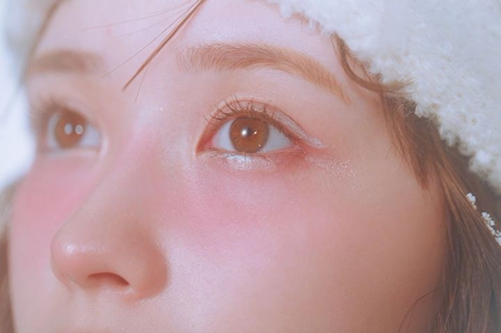 透明感増し増しなウブメイクの完成♡ 頬や鼻先のチークで濃いめの血色感がポイント。