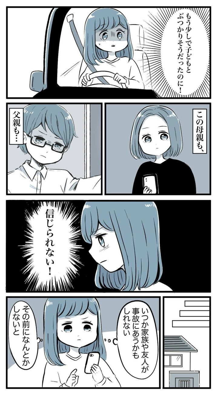 他人の家のことだからこそ、安易に踏み込むことはできませんよね。ですが、中野家の子どもと危うく事故を起こしそうになった主人公にとっては、他人事ではありませんでした。