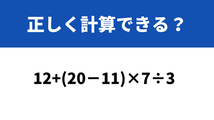 正しく計算できる?「12+(20−11)×7÷3」 小学生でも分かる問題に挑戦!