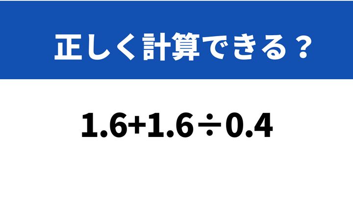 意外に間違える人が多いかも!「1.6+1.6÷0.4」→正しく計算できる?