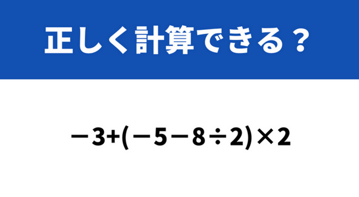 意外に間違える人が多いかも…?「−3+(−5−8÷2)×2」→正しく計算できる?