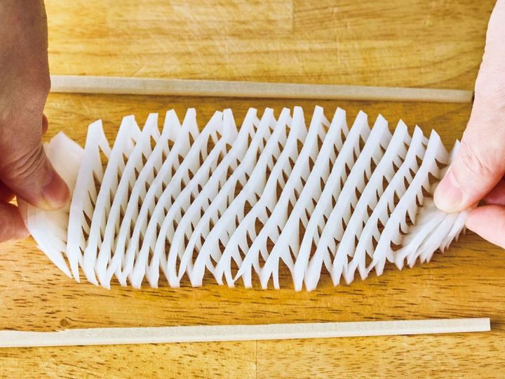 切り込みがこんなにたくさん! そのぶん、ザクザクの歯ざわりが楽しめるんです(大根がびよ~んとのびるのもインパクト大)!
