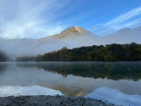 朝の時間帯には、穂高連峰が湖面に映り込む幻想的な風景が楽しめます。風が吹くと少し冷たさを感じましたが、それすら心地よく、自然の力を改めて実感しました!
