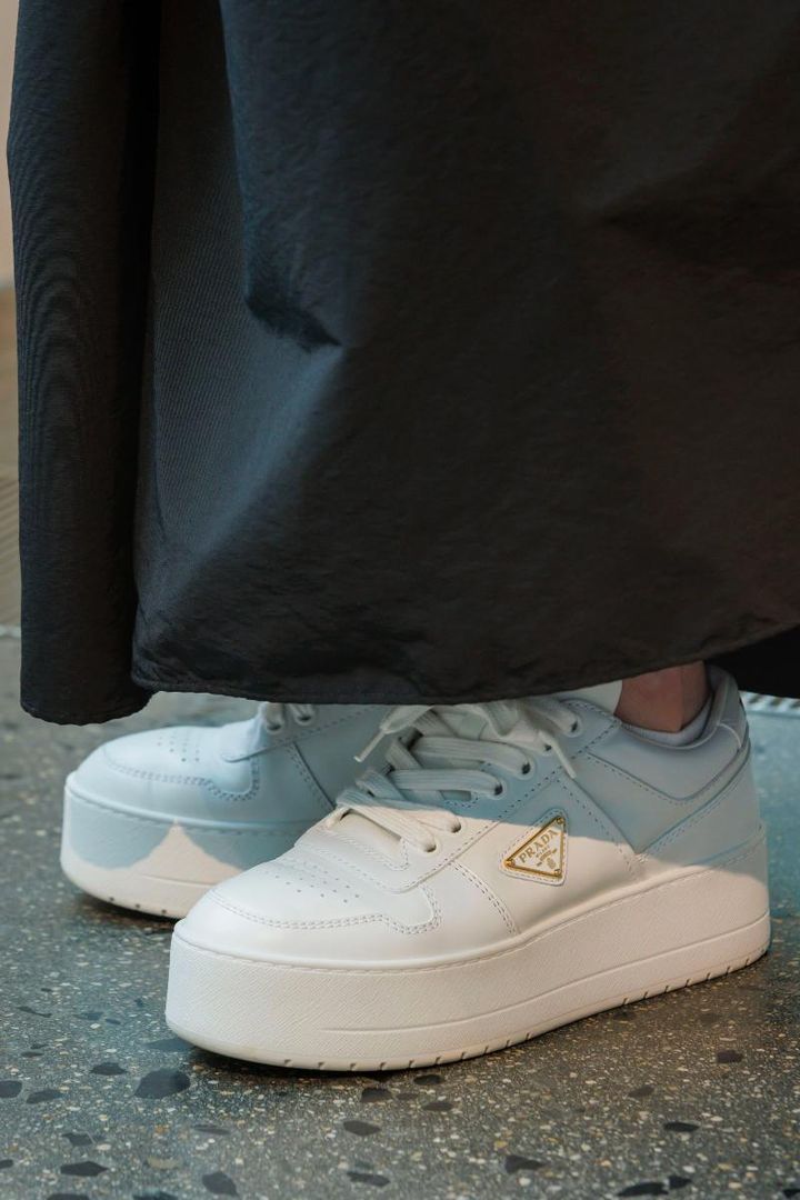 プラダの厚底スニーカーならフレアパンツのボリュームにも負けません