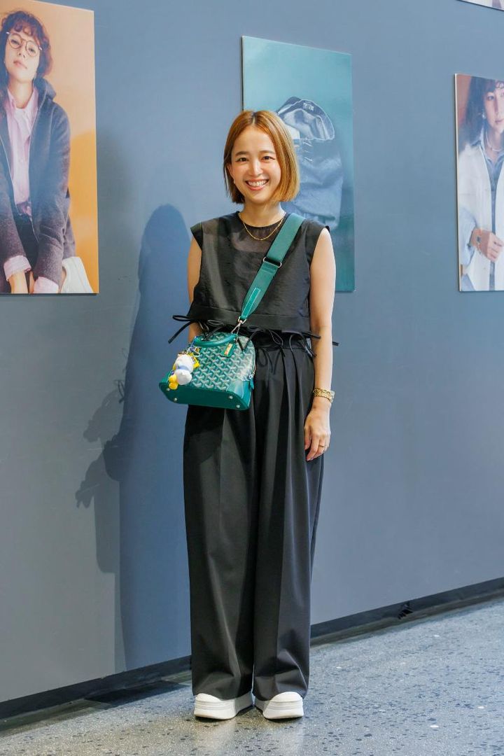「厚底スニーカーが欲しくて1年くらい探していましたが、なかなかイメージに合うものに出合えず諦めかけていたとき、ふらっと入ったお店でまさかの一目惚れ(笑)。削ぎ落としたシンプルなデザインに、高めのソールが決め手でした。今日は生憎の雨ですが、厚底のおかげでパンツの裾が濡れないのもうれしいです」山田真子さん・主婦(157㎝/長男21歳・5歳と1歳の女の子ママ)