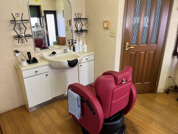 店内奥にドアで仕切られている部屋があり、そこが床屋さんになっています
