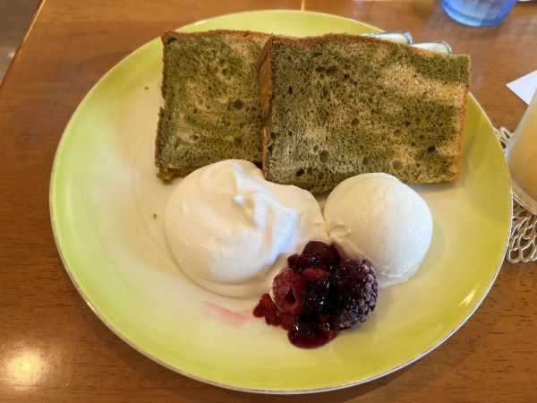 お店の外にあったメニュー看板にも大きく書いてあった自家製シフォンケーキをお願いしました。
