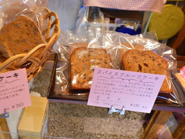 クリスマスの時期に合わせて「スパイスフルーツケーキ」のカットサイズが店頭に並んでいました。冬季限定の商品です。 洋酒漬けフルーツとくるみがたっぷりと入っており、一口ごとに広がるフルーツの甘みと、香ばしいくるみのハーモニーが楽しめます。