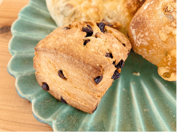 最後はチョコスコーンに手を伸ばしました。何層にも重なった生地が期待感を高めます。