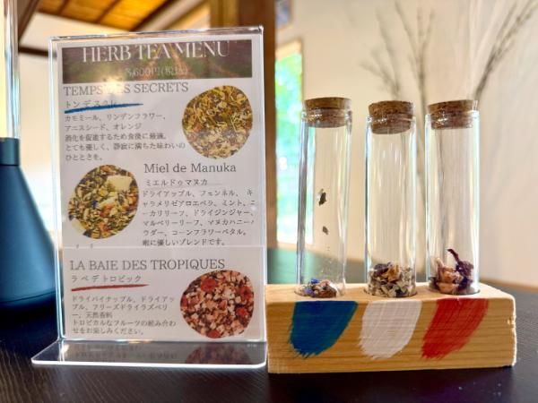 ドリンクはコーヒー・紅茶・ハーブティー・ジュースから選ぶことができます。3種類の珍しいハーブティーの中から、「ラべデトロピック」というトロピカルなフルーツを使ったハーブティーを注文しました。