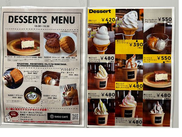 迷いに迷った末、SUGO-N(スコーン2個・660円)、SUGO!パフェ(990円)、りんごジュース(250円)をオーダーしました。 スコーンとSUGOの言葉の掛け合わせなど、遊び心があり面白いですね。