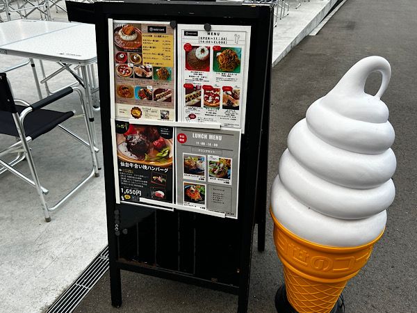 カレーやピザ、パスタ、ハンバーグなど、食事メニューも美味しそうなものばかりです。 ソフトクリームも気になる〜。