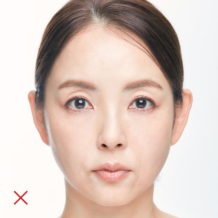 「口角を持ち上げる頰の筋肉の衰えだけでなく、舌の筋力の低下や口をポカンと開ける癖も口角が下がる原因に。でも口の周りの筋肉は年齢を重ねても鍛えやすく効果も出やすいパーツ。お風呂上がりなど血行が良く筋肉を動かしやすいタイミングにやるのがお勧めです。」