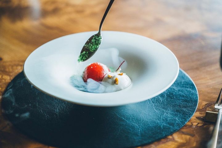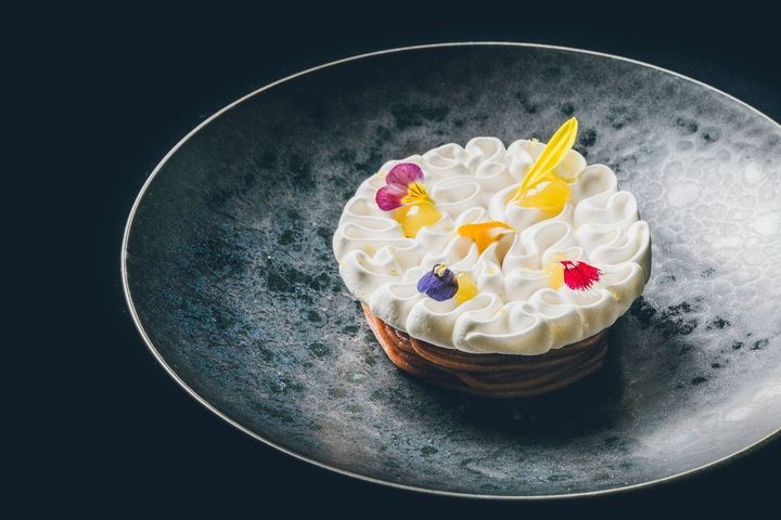 ここでシェフを務めるのは、小林の信頼も篤い杉本昌久。小林と「とらや」が2021年に手掛けた最初のレストラン「メゾンケイ(Maison KEI)」ではスーシェフを務め、パリにある小林の「レストラン ケイ(Restaurant KEI)」でも研鑽を積んだ。