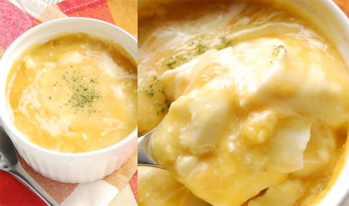 ズボラなわたしが勝手に師と仰ぐ「てぬき料理研究家」のてぬキッチンさんが、YouTubeで斬新な豆腐料理を紹介していました。それは「コーンクリームチーズ豆腐」という料理。"てぬき"のプロ考案のレシピだけあって、材料も工程も極少。耐熱容器に豆腐、コーンクリームスープの素、コンソメ、ピザ用チーズを入れてレンチンするだけ。「めっちゃおいしいから絶対試してみて!」と師匠に言われたら、もちろん作ります(笑)。