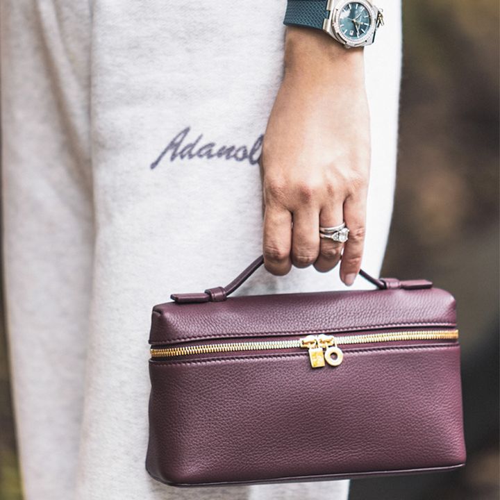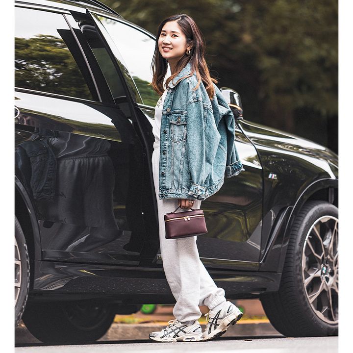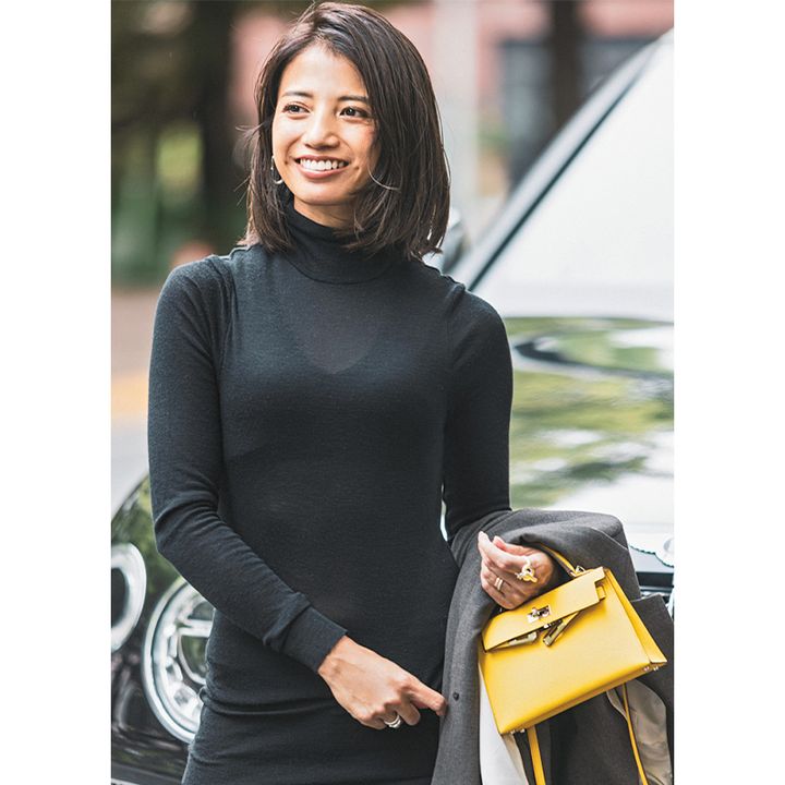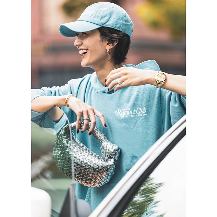 ロロ・ピアーナのバッグは、欧米ではエルメスのミニサイズの「ケリー」に次ぐ人気。送迎ではミニバッグで身軽さを最重視! Adanolaのウェアはシックなロゴデザインで、ロンドン滞在中に一目惚れ。日本未入荷なので、人とかぶらず自分らしさを出せます。