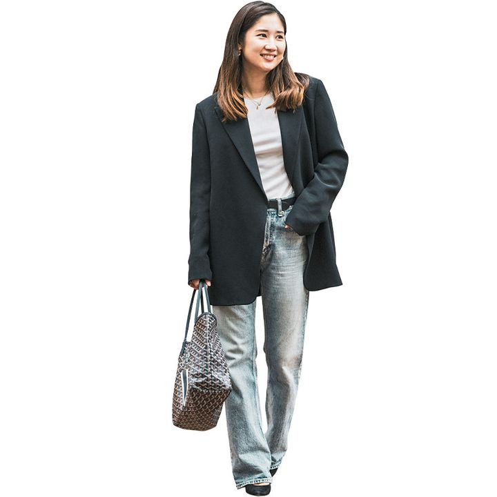 元々、きれいめスタイルが好きですが、送迎は機動力最優先でジムウェアが多め。送迎後はそのままジムでトレーニングをするのがルーティン。ジムの後は車の置きJKコーデに着替えてから職場へ向かうスタイルが確立しました。ウェアは柔和カラーでスポーティすぎないように調整を。仕事用JKはHARUNOBUMURATA、FUMIJEANのデニムで抜け感を意識します。