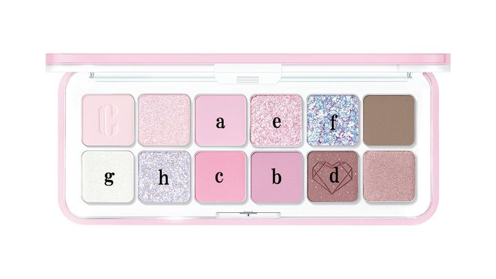 圧巻の12色パレットは青みがかったピンクで、印象が甘くなりすぎない。韓コスブランドらしい、スーパーマットとグリッターがバランスよくIN。リボン&ハートチャームも可愛すぎ♥