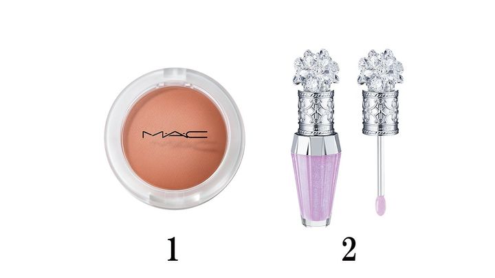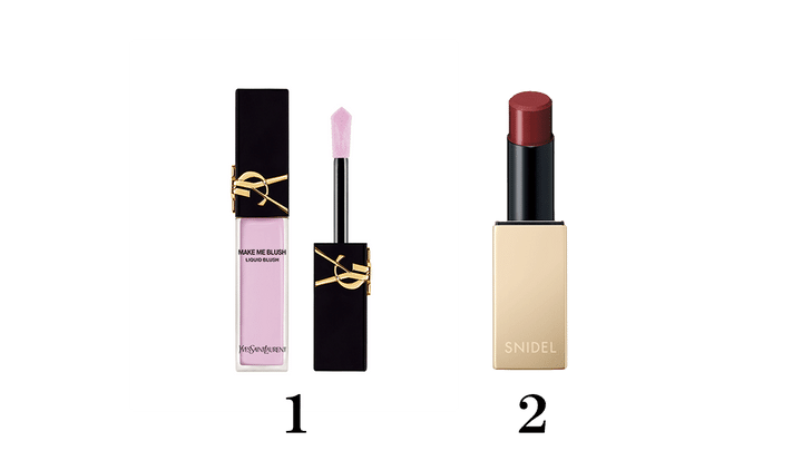 4. 【チーク&リップ】1は頬中央にやや縦長にのばして、透明感をプラス。