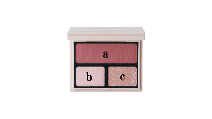 1.【アイパレ】a+bをブラシでアイホール全体に、cをやや狭めに重ねる。