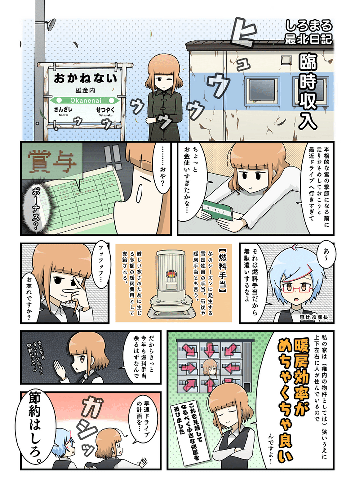 雪国あるある「燃料手当」って知ってる?冬を知らせる風物詩をご紹介|しろまる最北日記vol,40【漫画】