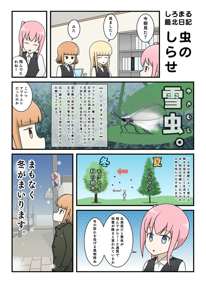突然目や鼻の穴に飛び込んでくる雪虫たちに多大なダメージを受けたものです…