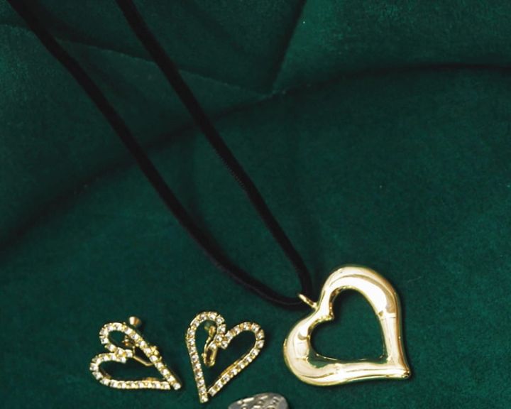 【左】ハートイヤリング 2,310円/GOLDY【右】ハートつきコードネックレス 2,530円/GOLDY