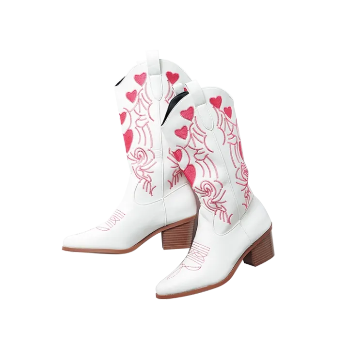 ハート柄白ウエスタンブーツ 3,391円/SHEIN