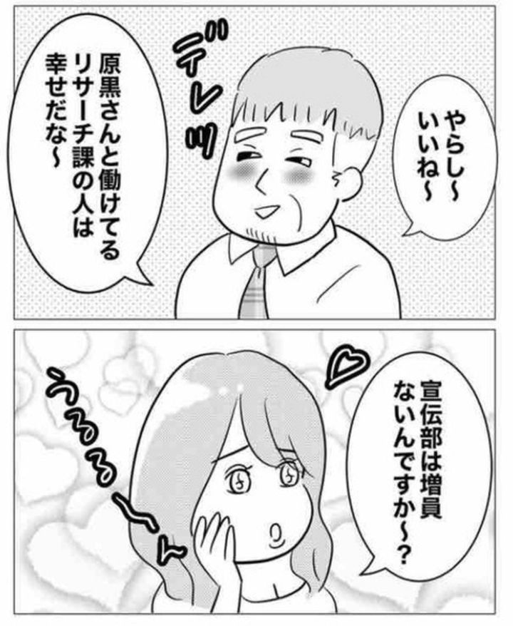 あまりにも自分本位な言動ばかり繰り返す腹黒さんに対して、ついに我慢の限界を迎えた本田さん。以前から「宣伝部へ異動したい」と言っている腹黒さんを、宣伝部の部長との飲み会に誘います。本田さんの狙いとは?