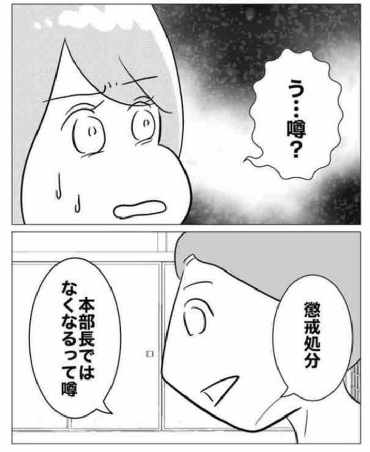 とてもスカッとする結末でした!腹黒さんが頼みの綱にしていた本部長は、懲戒処分を受けることに。しかも、本部長の不正を暴いたのは、以前、腹黒さんが見くだした相手・佐藤さんだったのです。