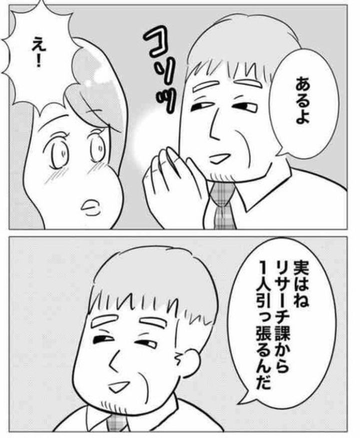 宣伝部への異動を希望している腹黒さんの目の前で、「私が行くの」と宣言した本田さん。実は、以前から宣伝部から打診があったのですが、子育てと仕事の両立に悩み、オファーを保留にしていました。ですが今回、あまりにも酷い腹黒さんの言動で怒りが爆発し、プラスのエネルギーへと変換した本田さん。宣言部への異動を決意したのでした。