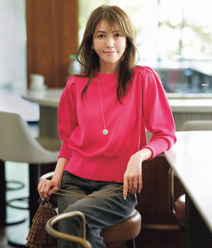 3位にランクインしたのは着るだけでパッと華やぐシークレット・トロフィーのニット。ビビッドなピンクに程よく盛ってくれる袖山のタック、長めのリブなど、可愛いけれど甘すぎない工夫が随所に。バックは小さな円錐形のスタッズ付きで“全方位可愛い”を約束してくれます。