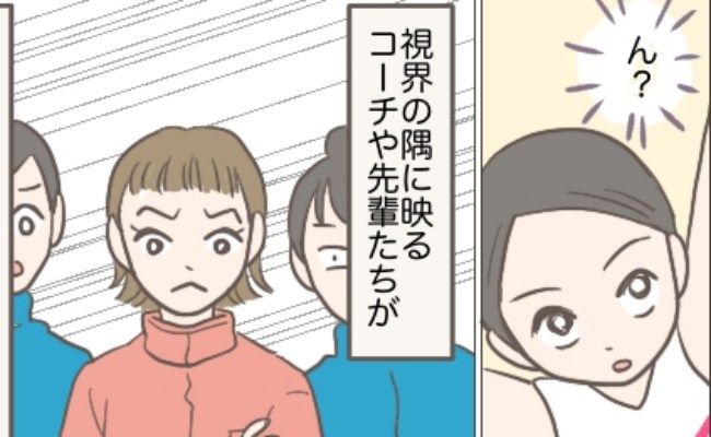 ふと、演技を見ていたコーチや先輩たちの視線が私に集まったように感じました。普通は、飛んでいる子に視線がいくかと思うのですが、なぜかそのときは見られている感覚があったのです。