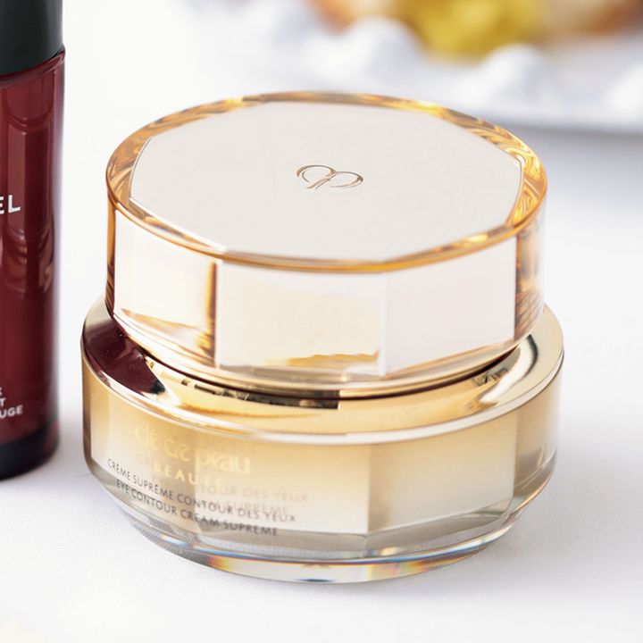 乾燥による小ジワやたるみ、まぶたの重さだけでなく、色素グマにも対応するマルチなアイクリーム。プラチナアイマッサージャーでのアイエクササイズで微弱な刺激を目元に与えることで、明るくハリまで目に宿る。クレームイユーS 15g ¥29,150(編集部調べ)